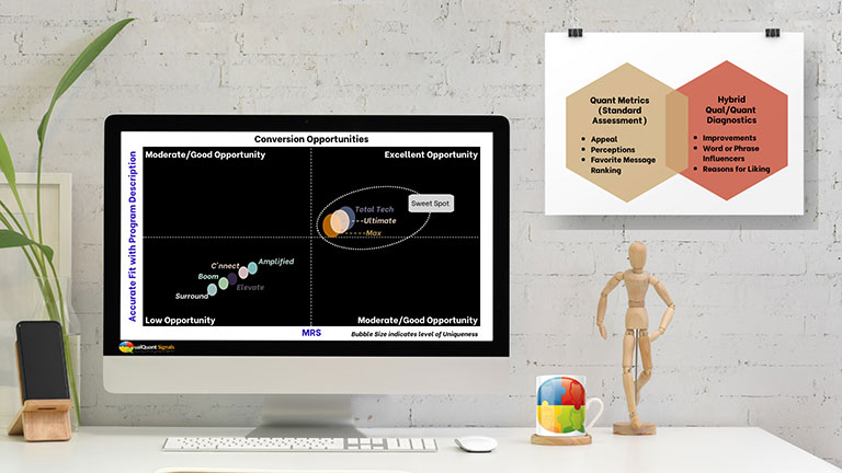 The QualQuant Signals ’Go-To Market' suite of research solutions tackles the study objectives within one project using an integrated ‘all-in-one’ methodology that does not require multiple steps to weave the insights together.